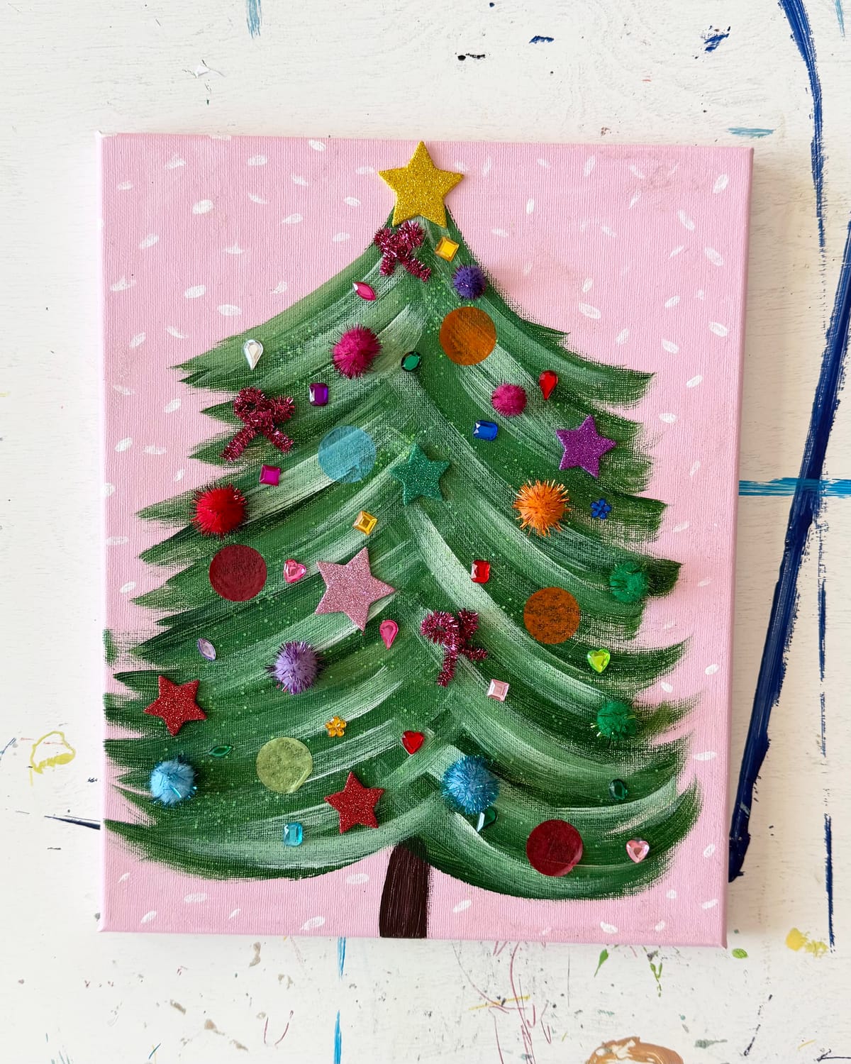 Come for the craft, stay for the laughter and unhinged rhinestone placement. We would love for you to come and create your own Christmas tree canvas! We will have an array of paints, rhinestones, jewels, pom-poms, glitter, confetti and pipe cleaners to adorn your special tree. I threw a little bit of everything on this one because I get excited at all the things. Can't wait to see your creation! Light drinks and snacks provided.